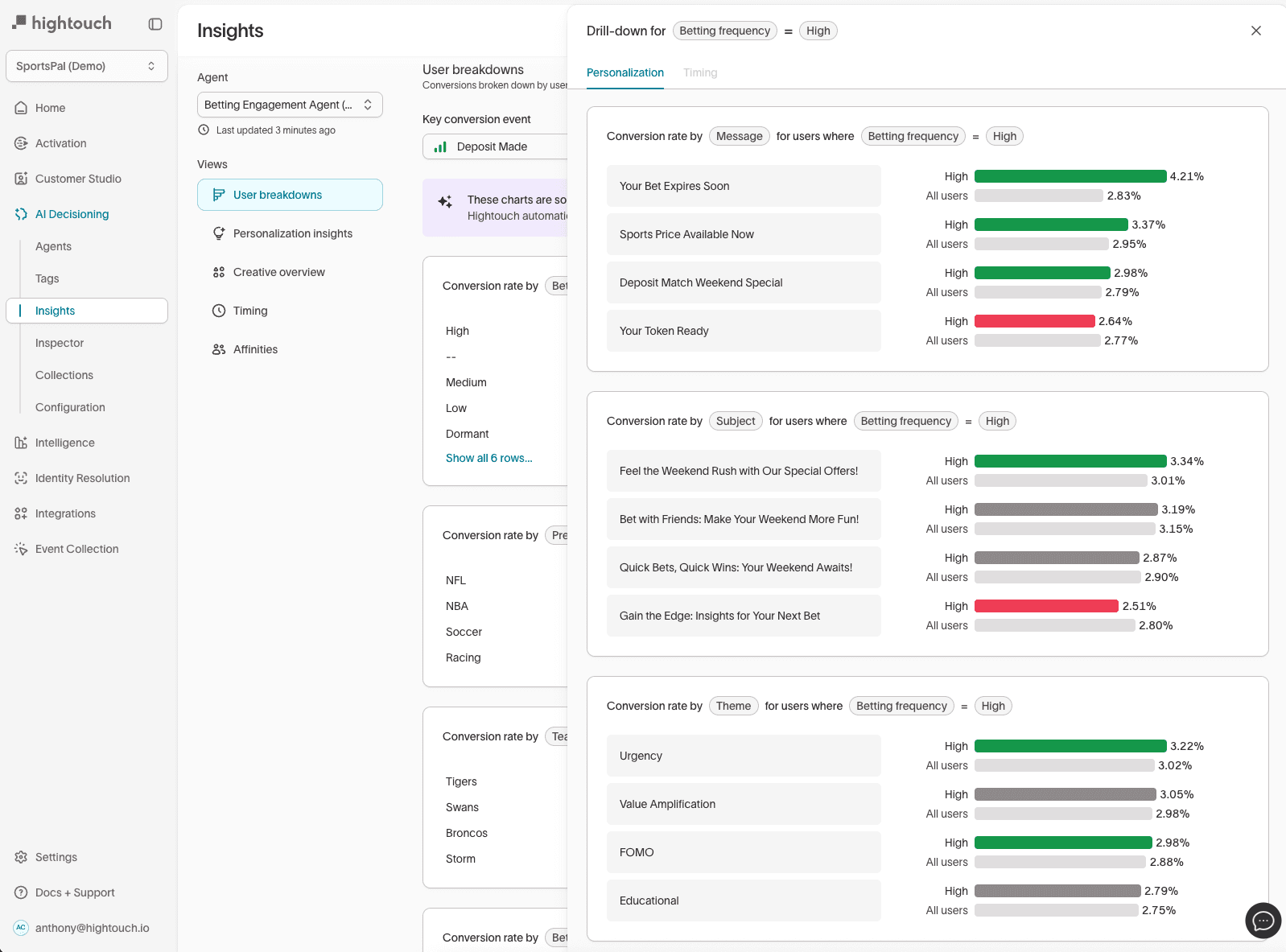 AI Decisioning isn’t just unlocking better campaign performance — it’s uncovering new insights. Every time an agent decides whether to send a push, hold back a promo, or swap in educational content, it generates learnings about what actually drives behavior in the moment. Those learning happens both on the individual level and in aggregate, which means the system is constantly learning what works on both an individual scale and a global scale.