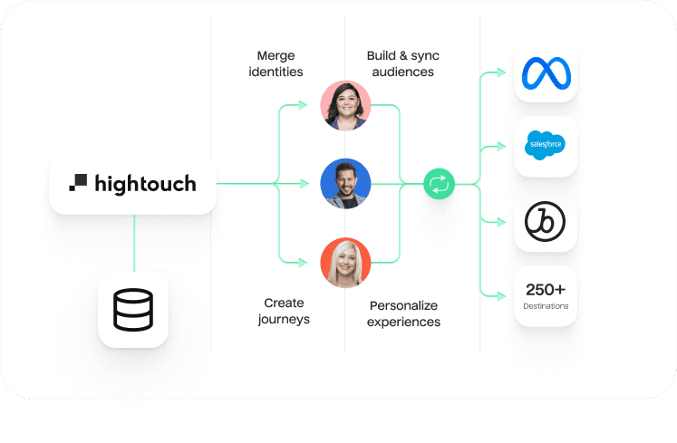 Composable CDPs, like Hightouch, operate natively within your data warehouse, activating complete customer profiles without ever moving or duplicating data. Every audience build, every campaign, every activation happens where your secure data already lives, keeping you compliant.