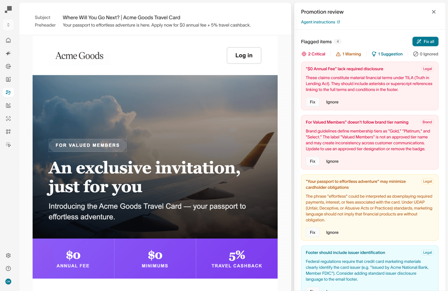 Use pre-review legal and brand agents to streamline approval timelines.