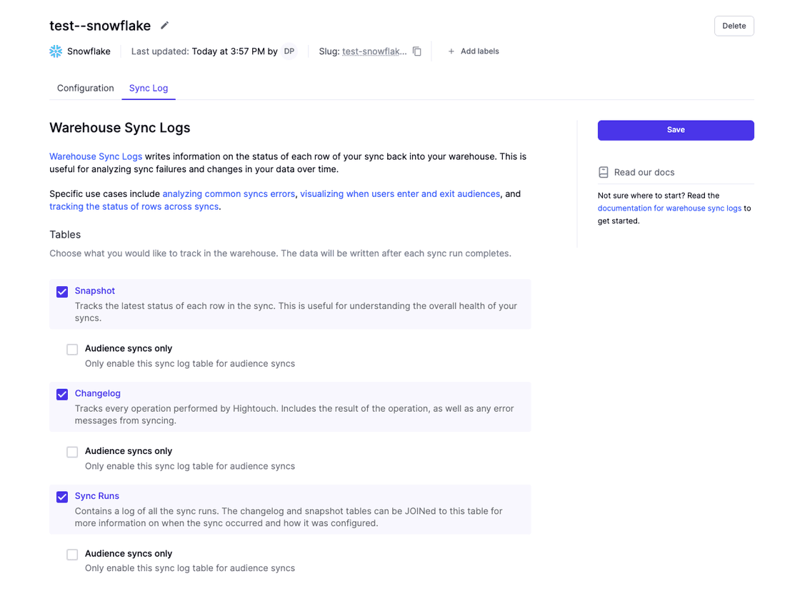 Source Level Sync Logs: You can now apply sync logs at the source level and Hightouch will apply the setting to all syncs in a source.
