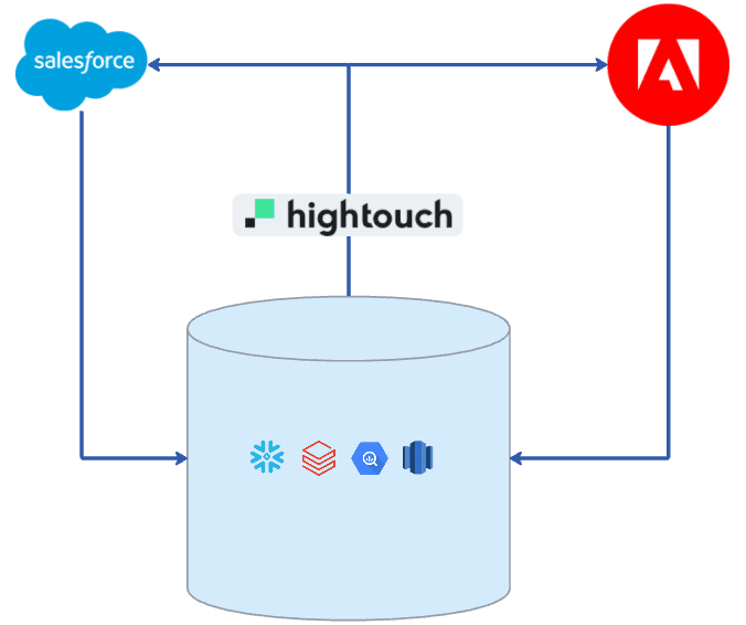 Hightouch has suddenly emerged as a popular way to connect these marketing suites to the cloud data warehouse. Many clients have told us that one of their favorite parts of Hightouch is its ability to keep Salesforce and Adobe in sync via the warehouse and power omnichannel campaigns across both suites.