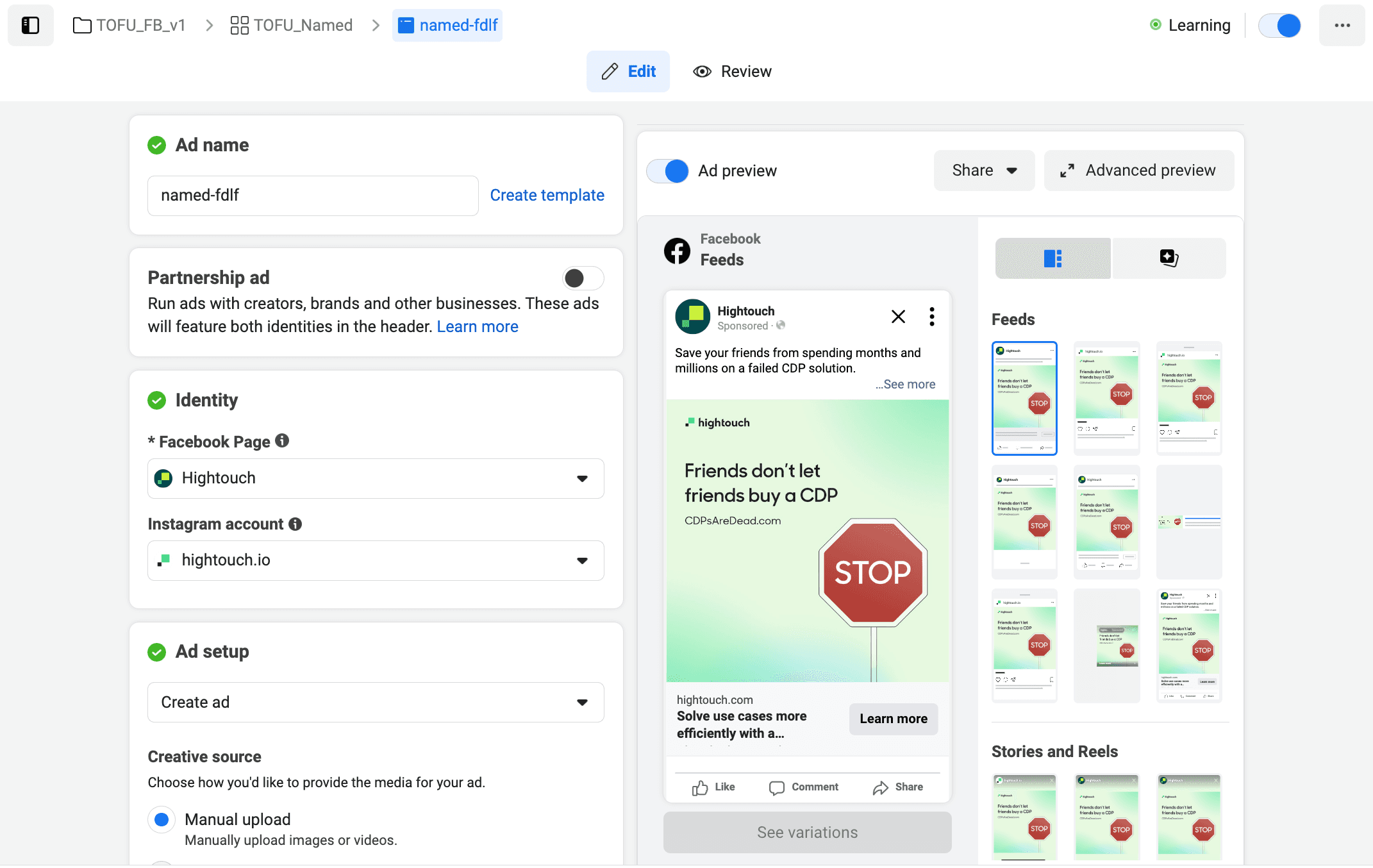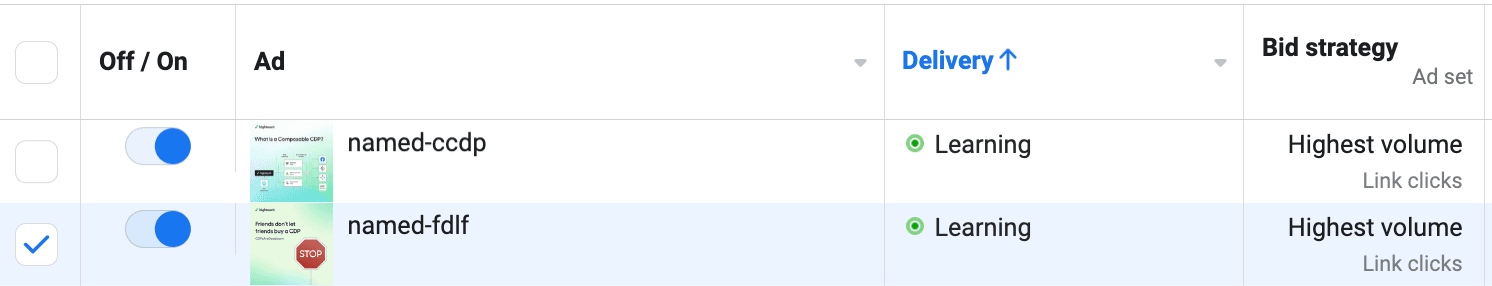 You can easily see the learning status of your campaigns in Meta.