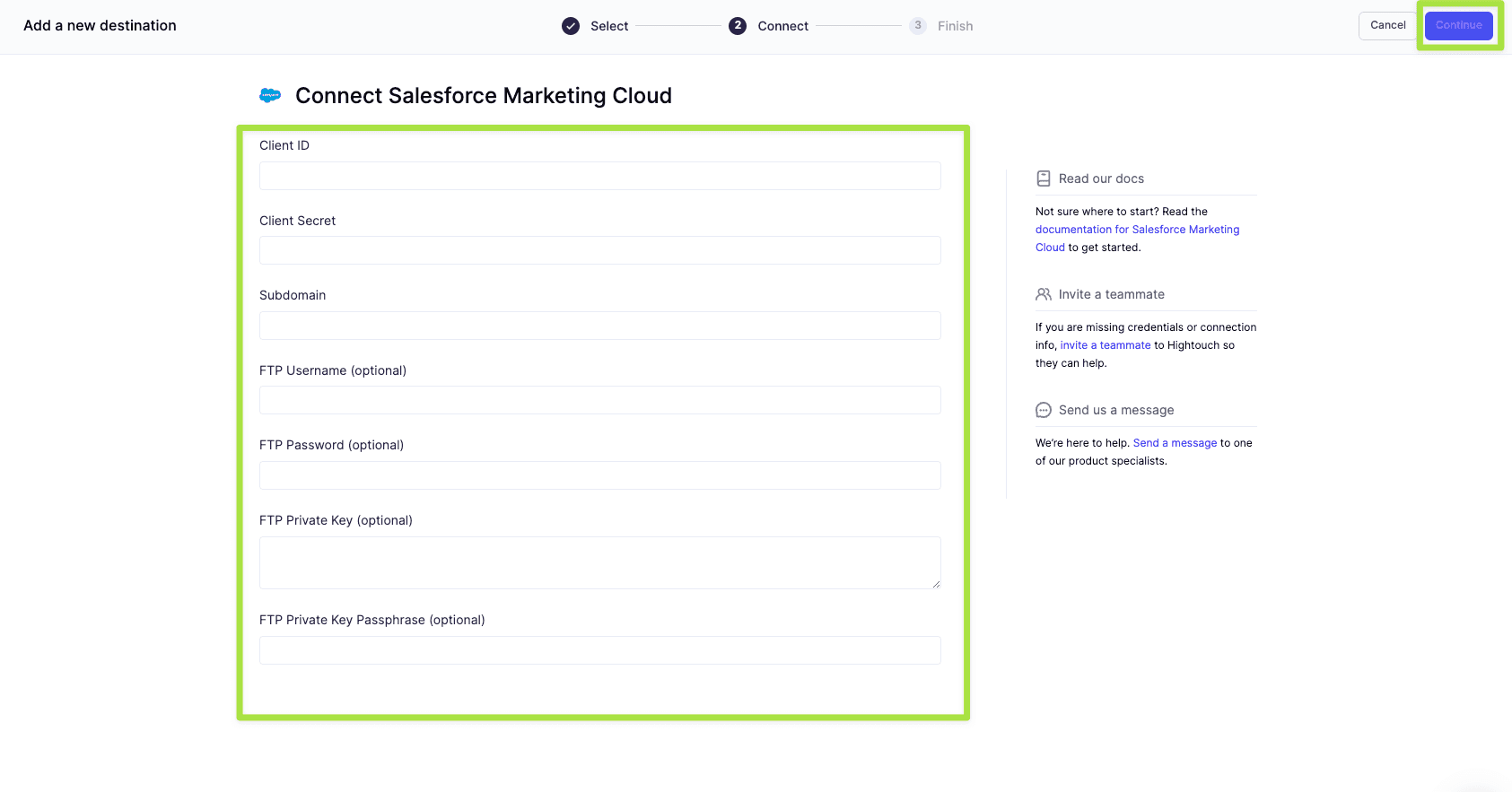 Enter your Salesforce Marketing Cloud details and click Continue.